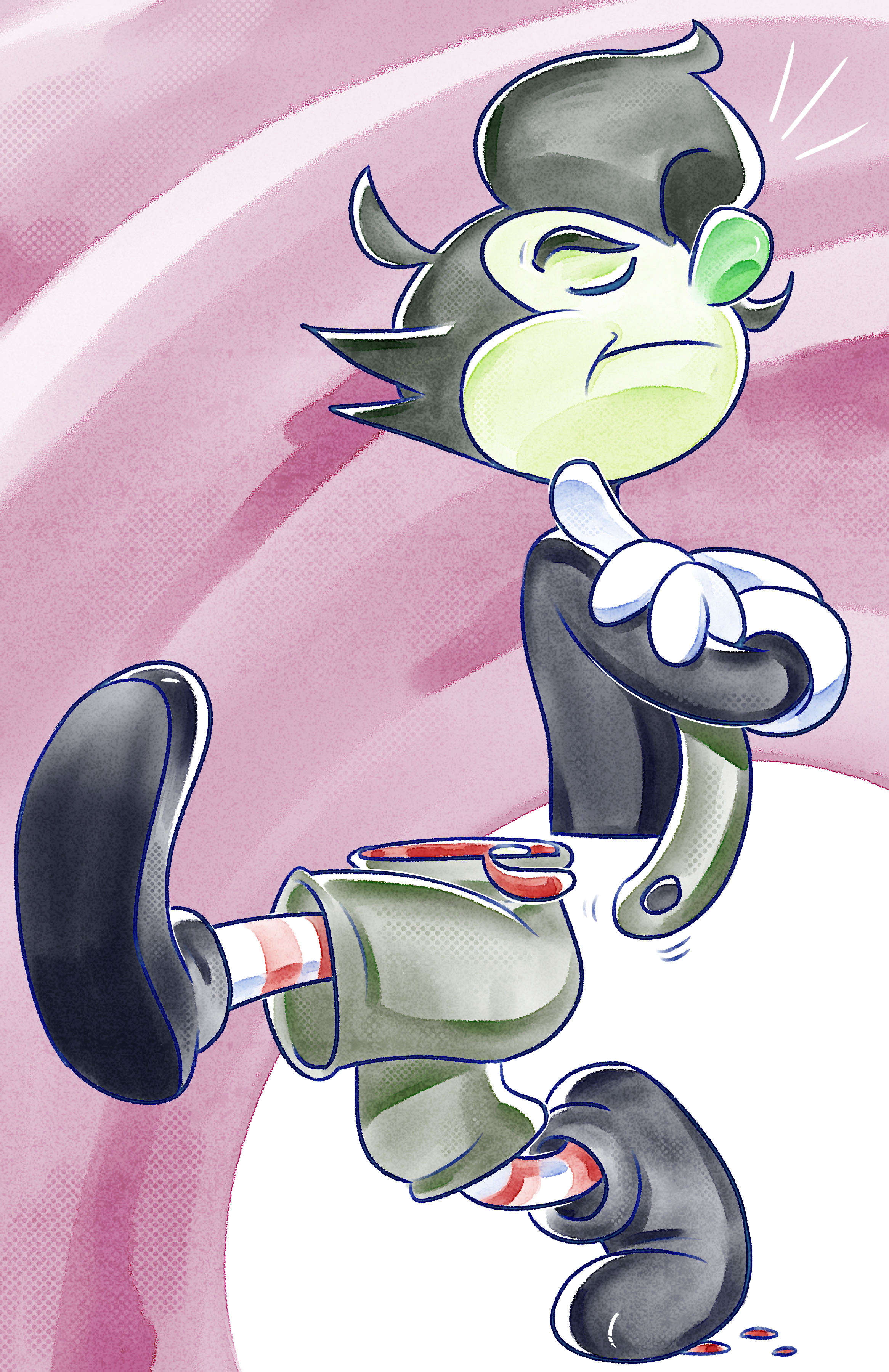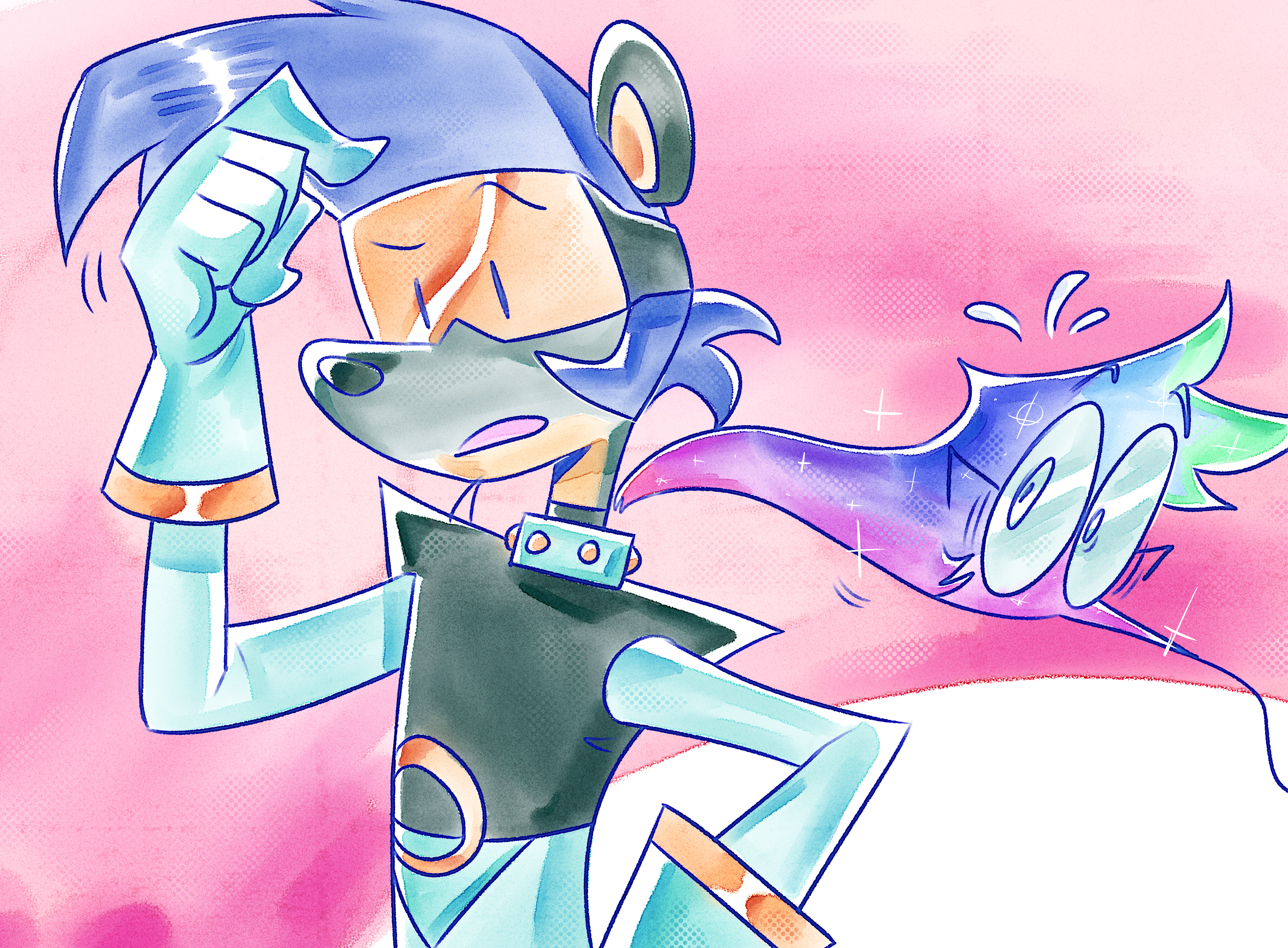 Shoot! (Real name: Von Zira): She’s the leader, and also the shortest of the group but who says height is relevant to leadership? She sings and plays the guitar! She, along with Tri, came up with the idea to form a band inspired by their mutual admiration for Julie Nova’s performances (they even got to meet him once!). But, what really pushed Shoot to become serious about the idea of being a band was Julie’s sudden disappearance (no one in the real world knows he’s in a different dimension). She can be playful, but she is dedicated to making music that can effect people’s lives. She’s cool, calm, and collected…. unless she’s around Fall during free time, then there’s only one braincell between the two (and she definitely doesn’t have it).