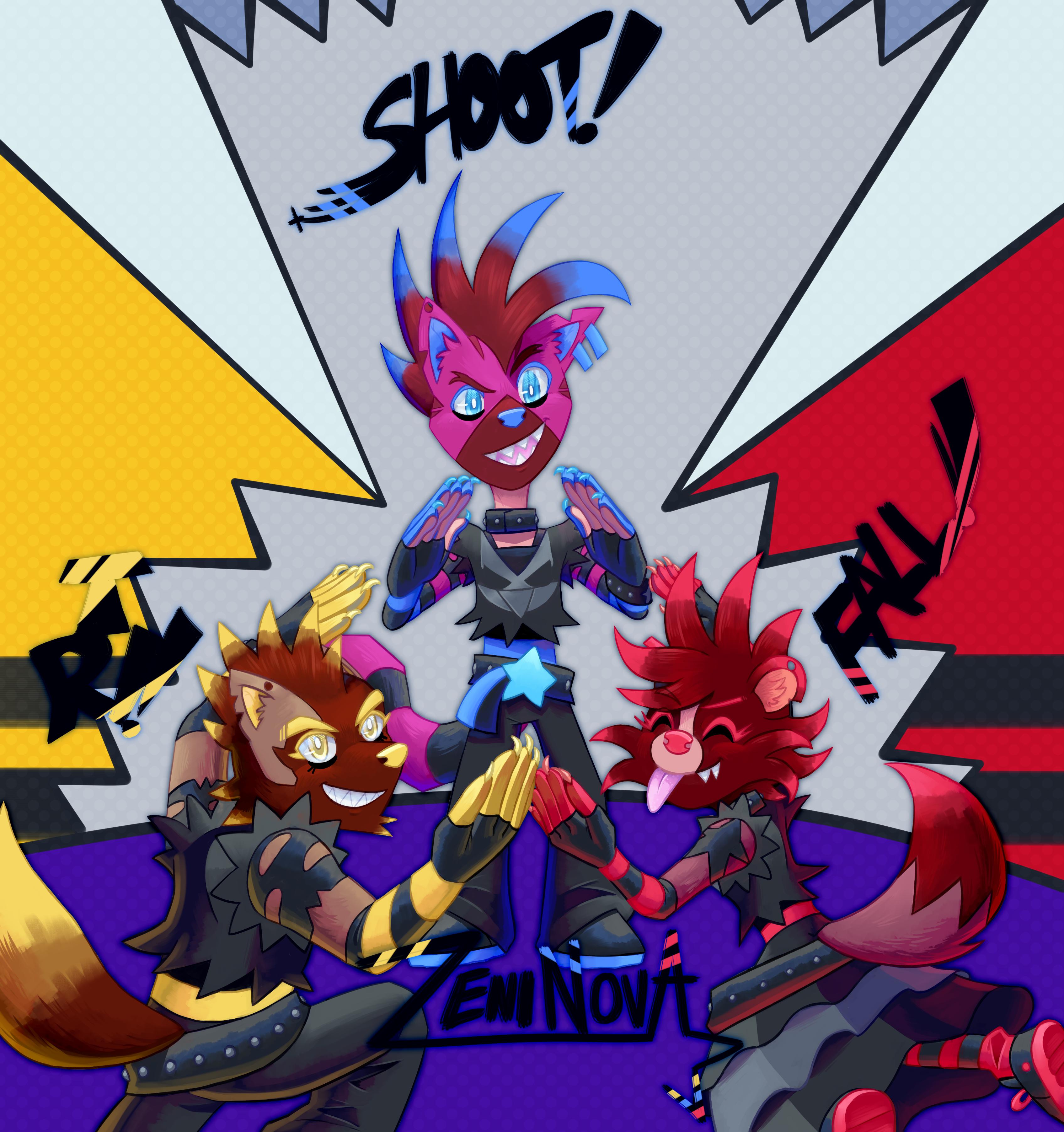 Introducing…. ZeniNova (Zenith Supernova for short)!! A band formed by friends-since-middle-school Shoot and Tri, inspired by Julie Nova! Despite their tough and dangerous looks, they actually make the same kind of songs that Julie made (positive and uplifting stuff)… just in their own extreme way. :)
