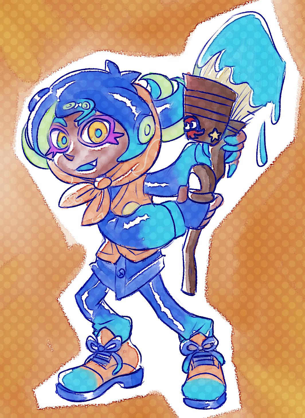 Wanted to draw something like this ever since I saw that sanitized octoling concept art… Of course I made the gun look more like a syringe than a squirt bottle.. thing.. cause it fit more with what I wanted to do. lol