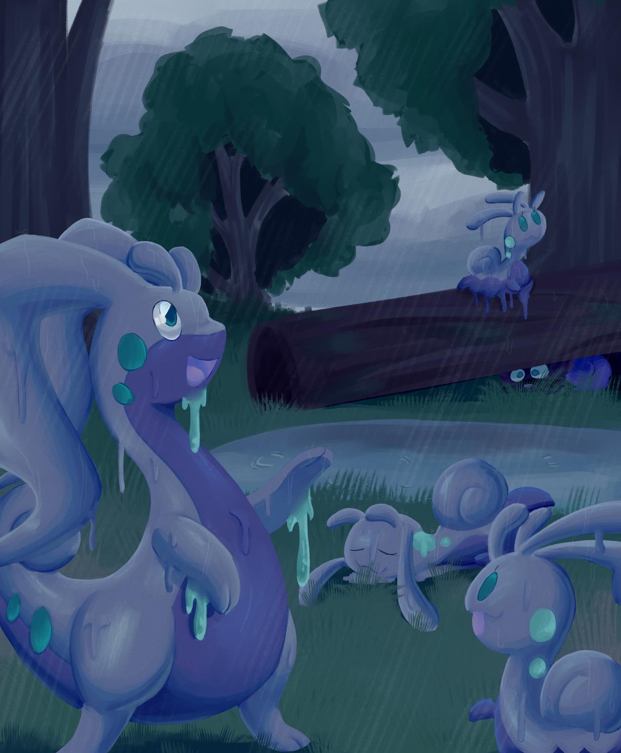 Goodra having fun with some friends